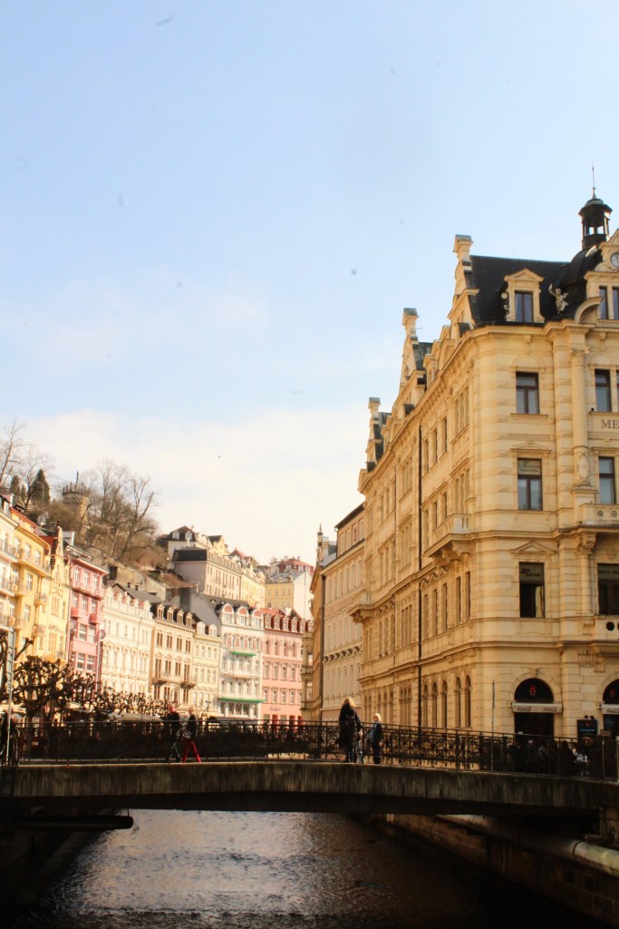 No instante em que coloquei os pés em Karlovy Vary, me apaixonei. O dia estava ensolarado, com uma temperatura deliciosamente agradável — nem fria o suficiente para que eu precisássemos usar casaco, mas nem quente o suficiente para nos fazer suar. E a cidade… a cidade era linda. Colorida, verdejante (ainda que no inverno), e com um certo charme bem-humorado. Embora, pensando bem, talvez essa última qualidade deva ser creditada à minha companhia.