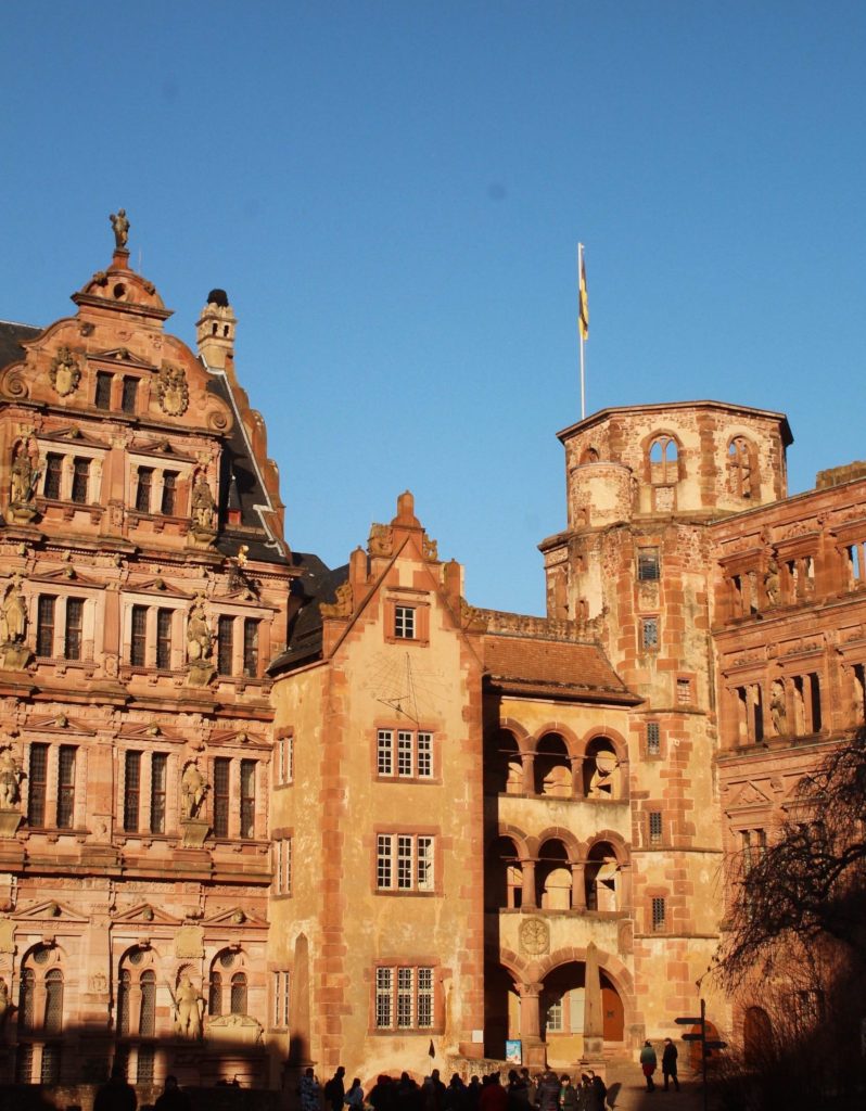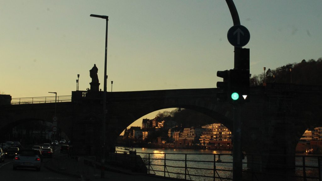 Chegamos, enfim, à Heidelberg. Era uma cidade pequena, mas parecia grande nos detalhes. O primeiro lugar que visitamos foi um antigo castelo, que oferecia uma vista da cidade de tirar o fôlego. A cidade era inteira de tirar o fôlego, na verdade. Era cortada ao meio por um longo rio, com casarões coloridos de ambos os lados, como se estivessem se olhando. Ao fundo, as montanhas cobertas de um verde seco lembravam que, apesar do sol, era inverno — e, ainda assim, transmitiam uma beleza calma e silenciosa, à sua própria maneira.